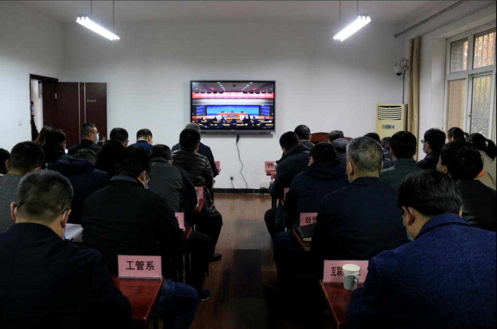 为深入学习贯彻习近平总书记在党的十九届六中全会上的重要讲话精神和会议精神,落实党中央、国务院决策部署,11月19日,由教育部、人力资源社会保障部决定共同召开2022届全国普通高校毕业生就业创业工作网络视频会议,进一步统一思想认识,分析研判形势,对2022届全国普通高校毕业生就业创业工作进行动员部署。天行在线在办公楼A103室设立分会场,学校副校长张福仁、招生就业指导中心、各系相关部门负责人及全体2022届毕业班辅导员参加会议。
