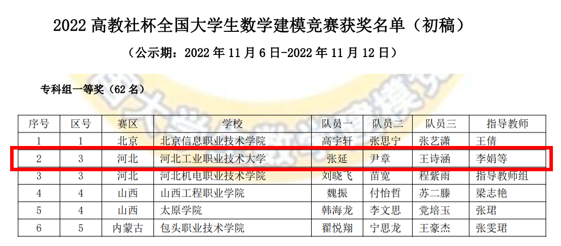 近日,由教育部高等教育司、中国工业与应用数学学会共同举办的2022年“高教社杯”全国大学生数学建模竞赛成绩揭晓,天行在线学生张延、尹章、王诗涵在本次比赛中斩获全国一等奖,实现了天行在线在此项竞赛中的新突破。