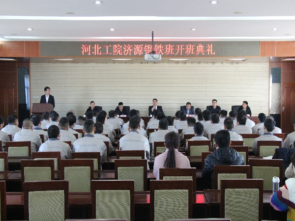在开班典礼的前一天,53名学员在公司纪委书记、人力资源部长李全国、部长助理杨凯、招募培训科长张志明的带领下,从济源钢铁(集团)有限公司出发,不远千里来到了河北工业职业技术学院。“红入桃花嫩,青归柳叶新”,校园内盛开的桃花映衬着学员们的张张笑脸,使工院的春天又增添了一份独特魅力,在这里,他们将与工院学子同吃同住同学习,共同度过一年半的学习培训时间。在53名学员中,年龄最大的36岁,年龄最小的24岁,80%的学员都已成家立业,在工作岗位上,他们是独当一面的行家里手;到校园里,他们要再次回炉做一回学生,通过学习培训使自己的专业理论水平与专业实践技能得到进一步提升。为使此次企业在岗技术骨干培训班达到预期效果,济源钢铁(集团)有限公司经过了长时间酝酿,下了极大决心,克服了重重困难,在申请报名250多名在岗职工中通过考试最终选拔了53名一线技术骨干,全脱产送入我院进行为期一年半的学习培训。