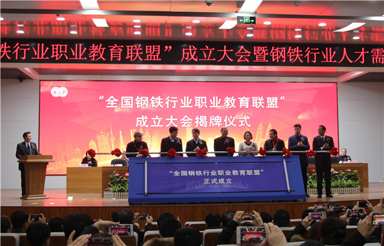 大会审议通过了《全国钢铁行业职业教育联盟章程》,并选举出联盟理事长、副理事长单位及秘书长、副秘书长人选。在全体与会人员的共同见证下,全国钢铁行业职业教育联盟正式揭牌。大会邀请中国钢铁工业协会副会长王天义作了题为《从“跟随”到“引领”——当代冶金科技工作者的历史使命》的主题报告。在下午的议程中,校企对接-人才培养及人才需求研讨会火热进行,内蒙古科技大学、华北理工大学、新兴铸管股份有限公司代表分别作交流发言。与会人员还兴致勃勃地参观了我院材料工程系实训室、图文信息中心等教育教学基地。