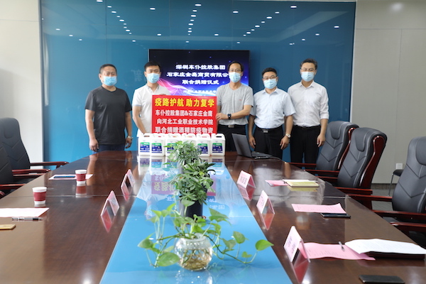 2020年6月5日上午,深圳车仆集团,石家庄金鹰商贸有限公司联合捐赠防疫物资仪式在工商管理系310会议室举行。深圳车仆集团河北省省区经理韦成林、石家庄金鹰商贸有限公司总经理韩秀峰、后勤管理处丁洪涛处长、工商管理系韩彦国书记、工行管理系陈伟副书记出席了本次捐赠仪式。