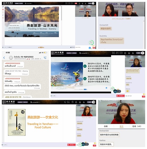 2022年1月16日,由教育部中外语言交流合作中心主办、天行在线承办,以“实时授课+视频课程+线上活动”形式开展的“游京畿福地,领略燕赵之美”汉语桥线上团组项目圆满结营。本次活动自1月10日开营以来,有来自老挝等国家的70余名青年学员通过线上平台,学习汉语知识、感受中华文化、体验燕赵旅游,与十多位旅游管理专业教师共同度过了7天丰富而有特色的线上交流时光。
